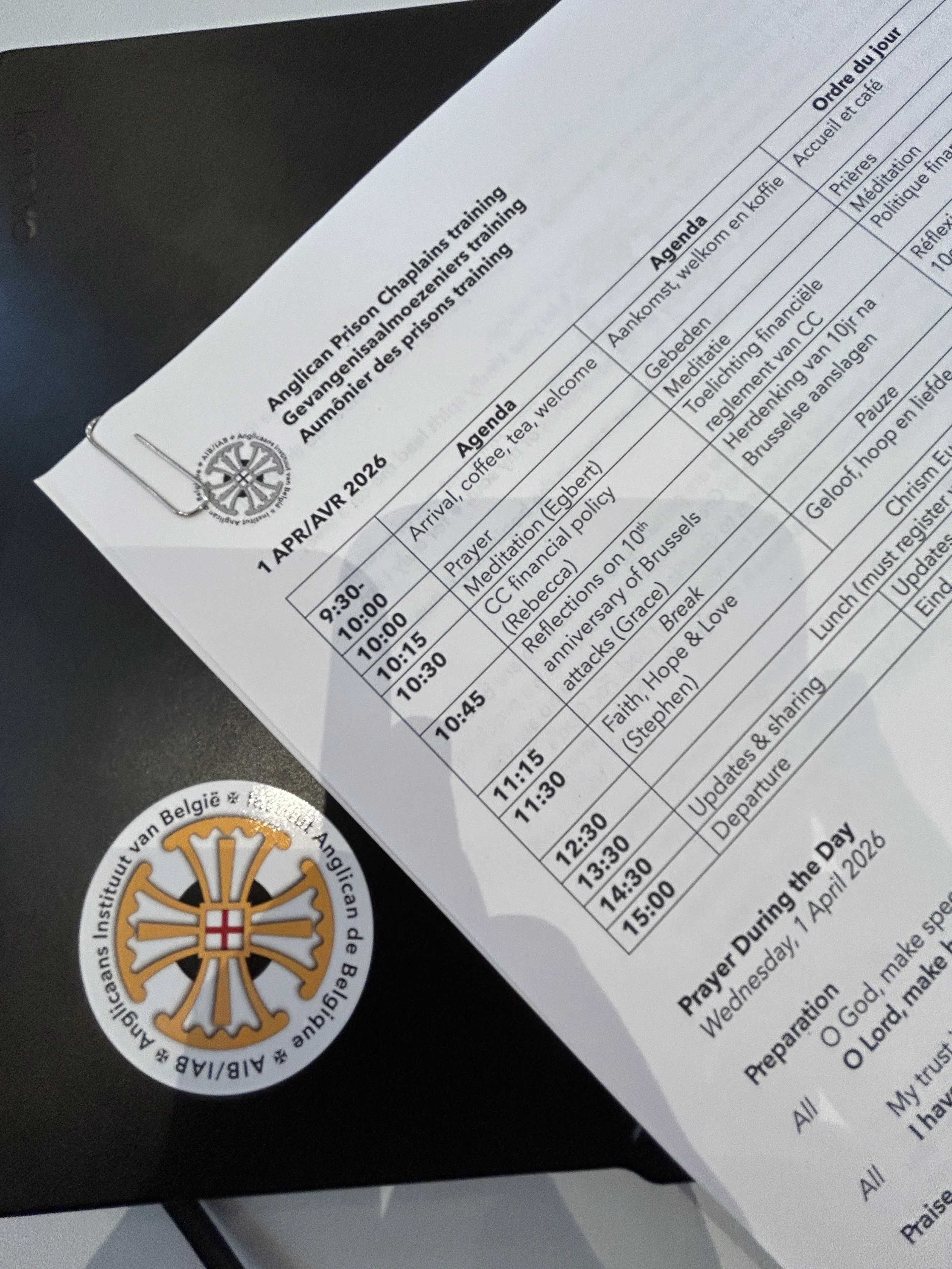 On April 1, 2026, another training day was organized by the Anglican Institute in Belgium (AIB) for Anglican prison chaplains serving in Belgium at the Church House of Holy Trinity in Brussels. The group was comprised of longstanding chaplains as well as new volunteers. The day started with prayer and meditation on Psalm 22.